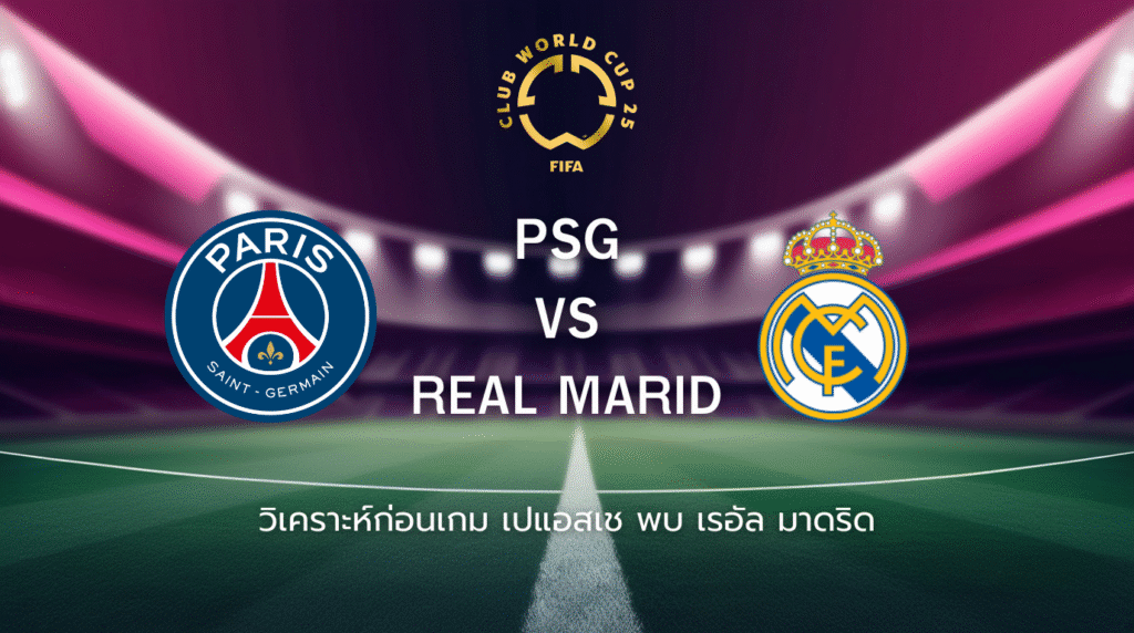 ศึกแห่งศักดิ์ศรีของสองขั้วยุโรปกำลังจะเริ่มต้นขึ้นในค่ำคืนที่สนาม MetLife Stadium เมืองอีสต์รัทเธอร์ฟอร์ด รัฐนิวเจอร์ซีย์ สหรัฐอเมริกา กับรอบรองชนะเลิศของรายการ ฟีฟ่า คลับ เวิลด์ คัพ 2025 ที่จะระเบิดความมันระหว่าง ปารีส แซงต์-แชร์กแมง (เปแอสเช) ตัวแทนจากฝรั่งเศส และ เรอัล มาดริด ยักษ์ใหญ่จากสเปน ในวันที่ 10 กรกฎาคม 2568 เวลา 02:00 น. ตามเวลาประเทศไทย หรือวันที่ 8 กรกฎาคม เวลา 19:00 น. ตามเวลาท้องถิ่นสหรัฐฯนี่คือเกมที่โลกฟุตบอลต้องหยุดดู การเผชิญหน้ากันของทีมที่เพิ่งผงาดคว้าแชมป์ยุโรปอย่าง PSG กับราชันย์แห่งทวีปที่มีถ้วยแชมเปียนส์ ลีก และแชมป์สโมสรโลกมากที่สุดในประวัติศาสตร์อย่างมาดริด ทั้งสองทีมต่างอุดมไปด้วยนักเตะระดับโลก ระบบการเล่นที่ล้ำลึก และความทะเยอทะยานที่จะสร้างชื่อในระดับสากล แมตช์นี้ไม่ใช่แค่การลุ้นผ่านเข้าสู่รอบชิงชนะเลิศเท่านั้น แต่ยังเป็นบทพิสูจน์ว่าใครคือเจ้ายุโรปตัวจริง บนเวทีระดับโลกที่ใหญ่ที่สุดของฟุตบอลสโมสร