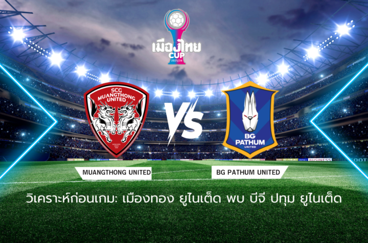 วิเคราะห์ก่อนเกม: เมืองทอง ยูไนเต็ด พบกับ บีจี ปทุม ยูไนเต็ด ศึกฟุตบอลถ้วย เมืองไทย คัพ จะกลับมาระอุอีกครั้งด้วยเกมที่แฟนบอลไทยรอคอย เมื่อ เมืองทอง ยูไนเต็ด...