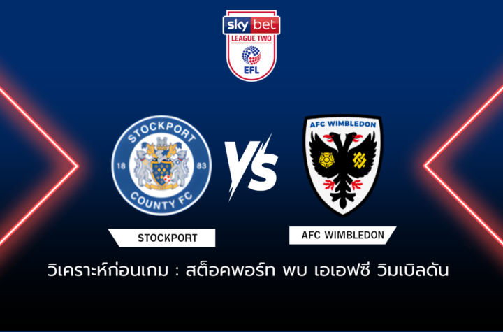 วิเคราะห์ก่อนเกม สต็อคพอร์ท พบกับ เอเอฟซี วิมเบิลดัน ศึกฟุตบอล ลีก วัน อังกฤษ ฤดูกาล 2025/26 เดินทางเข้าสู่ช่วงชี้ชะตาของฤดูกาล โดยเกมนี้เป็นการพบกันระหว่าง สต็อคพอร์ท...