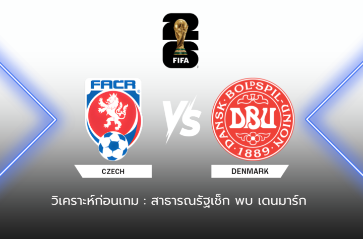 วิเคราะห์ก่อนเกม สาธารณรัฐเช็ก พบกับ เดนมาร์ก ก้าวเข้าสู่โค้งสุดท้ายของการแย่งชิงตั๋วไปฟุตบอลโลก 2026! นี่คือเกมระดับ 5 ดาวที่เป็นการพบกันของสองทีมแกร่งจากยุโรปกลางและยุโรปเหนือ สาธารณรัฐเช็ก (เช็กเกีย) จะเปิดสนาม เอเปต อารีนา(Generali...