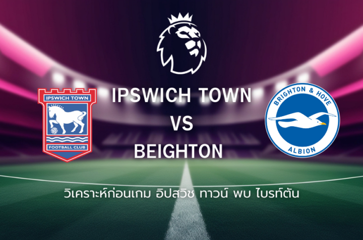 วิเคราะห์ก่อนเกม อิปสวิช ทาวน์ พบกับ ไบรท์ตัน เกมนี้ถือเป็นเกมที่น่าติดตามในพรีเมียร์ลีกอังกฤษ โดยอิปสวิช ทาวน์ จะเปิดบ้านพบกับ ไบรท์ตัน ในการแข่งขันที่ทั้งสองทีมมีเป้าหมายต่างกัน โดยอิปสวิชต้องการเก็บแต้มเพื่อทำอันดับในตาราง ขณะที่ไบรท์ตันจะหวังที่จะรักษาฟอร์มที่ดีเพื่อการขยับอันดับในลีก ฟอร์มทีมล่าสุด...